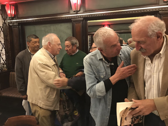 Éramos trinta e tais e não tenho pachorra para indicar todos os nomes mas há três que não posso deixar de nomear e que são o meu neto Rodrigo, a minha filha a Mena e o meu genro o Rui porque foram pela primeira vez e julgo que estão dispostos a partir de agora a ir a...todos!!! Ementa: bacalhau, bife, gambas com alho, vinhaça(nem seria almoço sem ele!!!), sobremesas, digestivos, bicas mas o que não faltou foi paleio, conversas da treta e estórias dos anos 70 e 80 do século ...passado. Aliás o tal livro aborda com o título QUINTOBAIRRISMO, cenas vividas naquelas duas décadas.